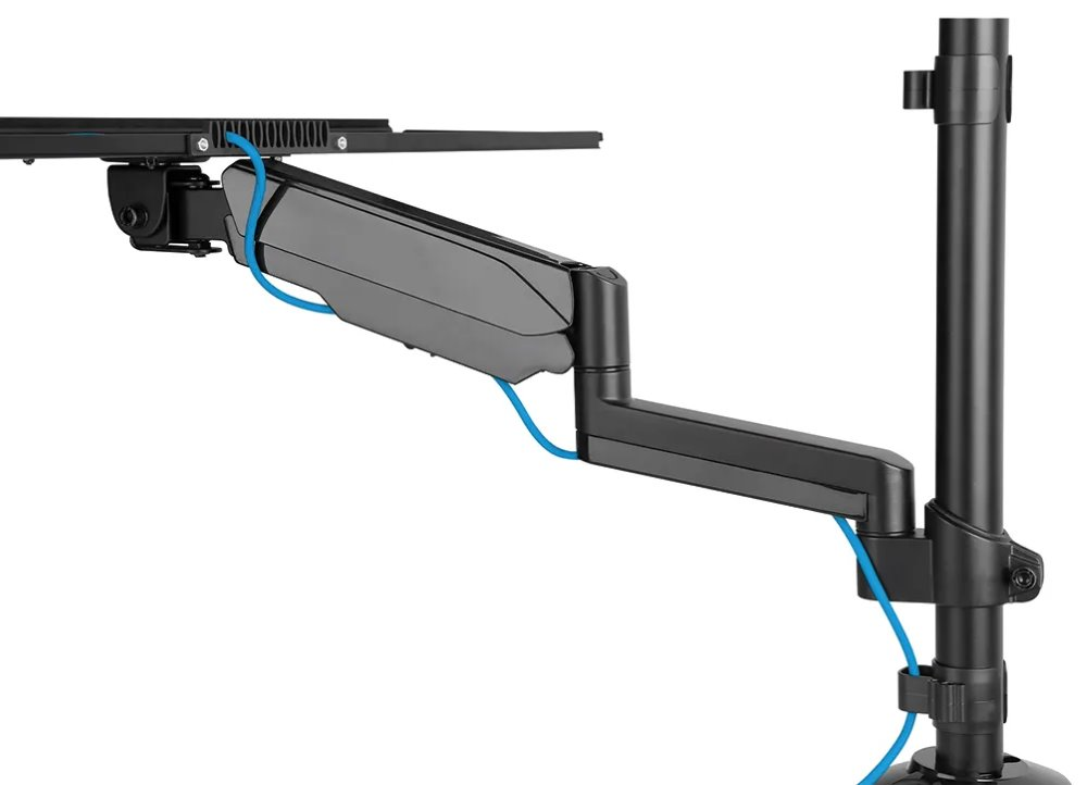 Výškově nastavitelná stolní pracovní stanice pro LCD monitory o velikosti 17" až 32", klávesnici a myš, kterou lze používat vsedě i vestoje. VESA držák unese obrazovky o hmotnosti až 9 kg (zakřivené až 6 kg), zatímco polička na klávesnici disponuje nosností až 1 kg. Všestranná technologie naklápění (70°), rotace (360°) a otáčení (180°) umožňuje optimální nastavení. Pro zajištění rychlé změny polohy je vybaven plynovou pružinou. Držák je vhodný pro obrazovky, které odpovídají vzoru otvorů VESA 75 × 75 nebo 100 × 100 mm.