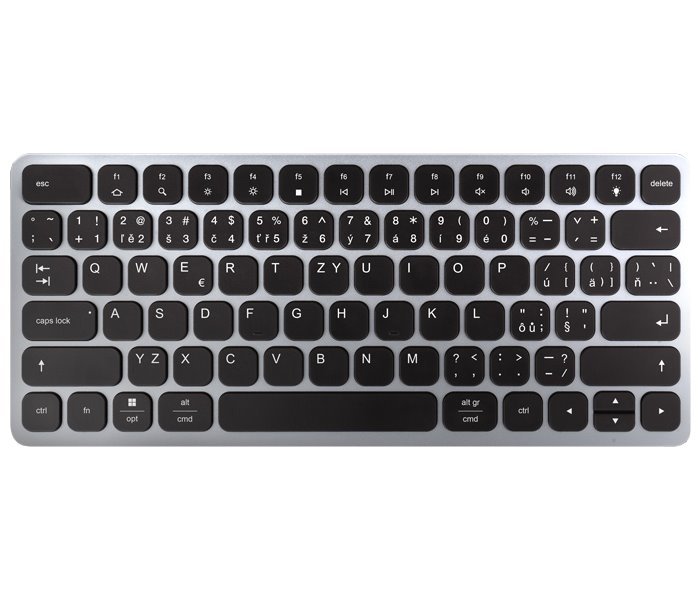Klávesnice je osazena chiclet klávesami s nůžkovým mechanismem a 2mm zdvihem pro přesné a tiché psaní. Nabízí nastavitelné podsvícení v 5 úrovních a možnost zvětšení sklonu pro pohodlné a ergonomické užívání. HDMI výstup umožňuje připojení externího monitoru, TV nebo projektoru s rozlišením až 4K při 60 Hz, 2K při 120 Hz nebo 1080p při 200 Hz a přenos vícekanálového zvuku. Díky podpoře HDR si můžete vychutnat výrazně rozšířený rozsah barev a kontrastů bez omezení. Tři USB výstupy umožňují připojení externích disků (až 2 současně), flash disku, myši, tiskárny a dalšího příslušenství. USB porty také nabíjí mobilní telefony a tablety výkonem až 7,5 W. Čtečka paměťových karet podporuje čtení a zápis všech verzí SD a microSD karet s kapacitou až 2 TB. Navíc také umožňuje současnou práci s kartami v obou slotech a přímé kopírování mezi nimi. Zvukový výstup 3,5 mm nabízí možnost připojení stereo sluchátek, headsetu nebo aktivních reproduktorů. USB-C vstup je určen pro vhodnou Power Delivery nabíječku. Díky tomu je jak vaše mobilní zařízení, tak i hub napájen přímo z nabíječky s využitím technologie Power Delivery 3.0 s výkonem až do 100 W.