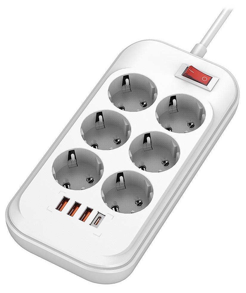 Kompaktní prodlužovací přívod se šesti Schuko zástrčkami, třemi porty USB 2.0 podporující technologii Quick Charge 3.0 a jedním USB-C portem podporující technologii Power Delivery. Lze s ním tedy připojit nejen elektrické spotřebiče, ale současně nabíjet až čtyři mobilní zařízení z portu USB do max. výkonu 36 W. Tlačítko zapnutí/vypnutí a indikace LED zajistí ještě pohodlnější používání. Prodlužovací kabel je vybaven uzemněním a přepěťovou ochranou, což zajišťuje bezpečné používání.