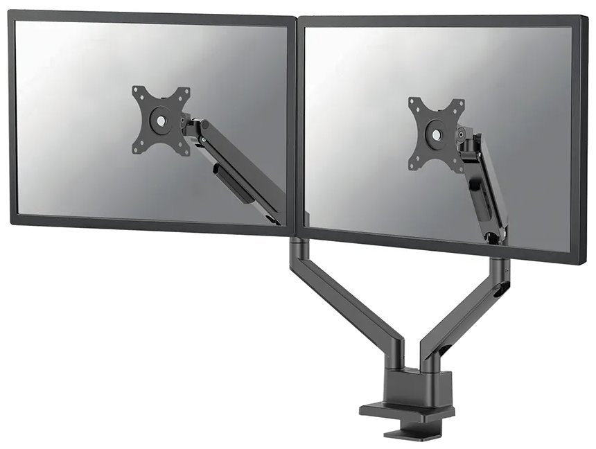 Plně pohyblivý stolní držák pro dva ploché nebo zakřivené monitory s úhlopříčkou 17" až 32" a maximální hmotností 18 kg (2× 9 kg). Všestranná technologie naklápění, otáčení a rotace umožňuje vytvořit optimální pozorovací úhel. Držák má nastavitelnou výšku 21,5–49,5 cm, hloubku 7–52,5 cm a je vhodný pro obrazovky, které odpovídají vzoru otvorů VESA 75 × 75 až 100 × 100 mm. Potěší také systém pro úhledné vedení kabelů. Balení obsahuje stolní svorku i průchodku.