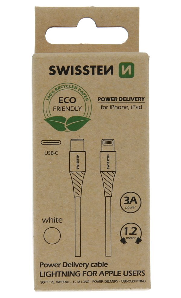Nabíjecí a datový USB-C na Lightning kabel vyrobený z termoplastického polyuretanu (TPU) se vyznačuje vysokou pružností a ohebností, ale zároveň pevností a odolností. Kromě přenosu dat rychlostí 480 Mb/s podporuje také nabíjení proudem až 3 A. Konektory jsou pokryty eloxovaným hliníkem, který na vzduchu neoxiduje a zvládne i hrubší zacházení. Dodáván je v ekologickém balení z recyklovaného papíru.
