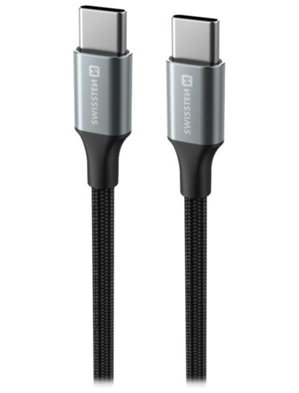 Kabel s kvalitním textilním opletením vhodný k propojení zařízení s konektory USB-C. Podporuje nabíjení proudem až 3 A. Rychlost datového přenosu je až 480 Mb/s.