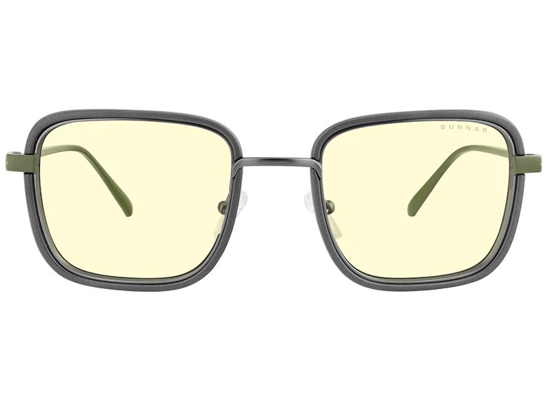 Kancelářské brýle s jantarovými skly a jedinečným designem, určené zejména pro dlouhou práci či hraní na počítači. Tento retro-futuristický styl hranatých obrouček má přední část z nerezové oceli a nylonu zakončenou olivovými kovovými nožičkami. Brýle blokují 65 % modrého světla a 100 % ultrafialového záření, díky čemu minimalizují zatížení očí a celkovou únavu. O maximální komfort se postarají ergonomicky tvarovaná sedla, zatímco pevná konstrukce rámu a boční štíty zajistí správnou optickou stabilitu.