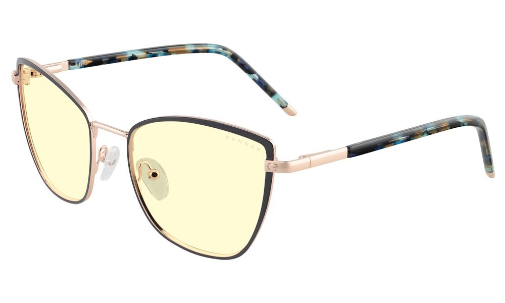 PC brýle GUNNAR ERIKA INDIGO/GOLD kombinují styl a pohodlí během dlouhých hodin strávených před displejem. Do obrouček jsou vsazena jantarová skla, která blokují 65 % modrého světla a 100 % ultrafialového zařízení. Podpoří tak komfortní viditelnost a svěží oči během každého dne, ať už se věnujete hraní her nebo práci.