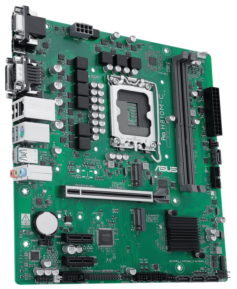 Základní deska ASUS PRO H810M-C-CSM je navržena pro moderní firemní PC připravené na umělou inteligenci. Modelová řada PRO podporuje komplexní ochranu systému a stabilitu v IT provozu. Je kompatibilní s procesory Intel Core Ultra série 2 a operační pamětí typu DDR5, takže náročné procesy a výpočty zvládne ve vysoké rychlosti a s lepší energetickou účinností.
