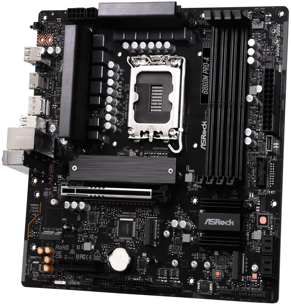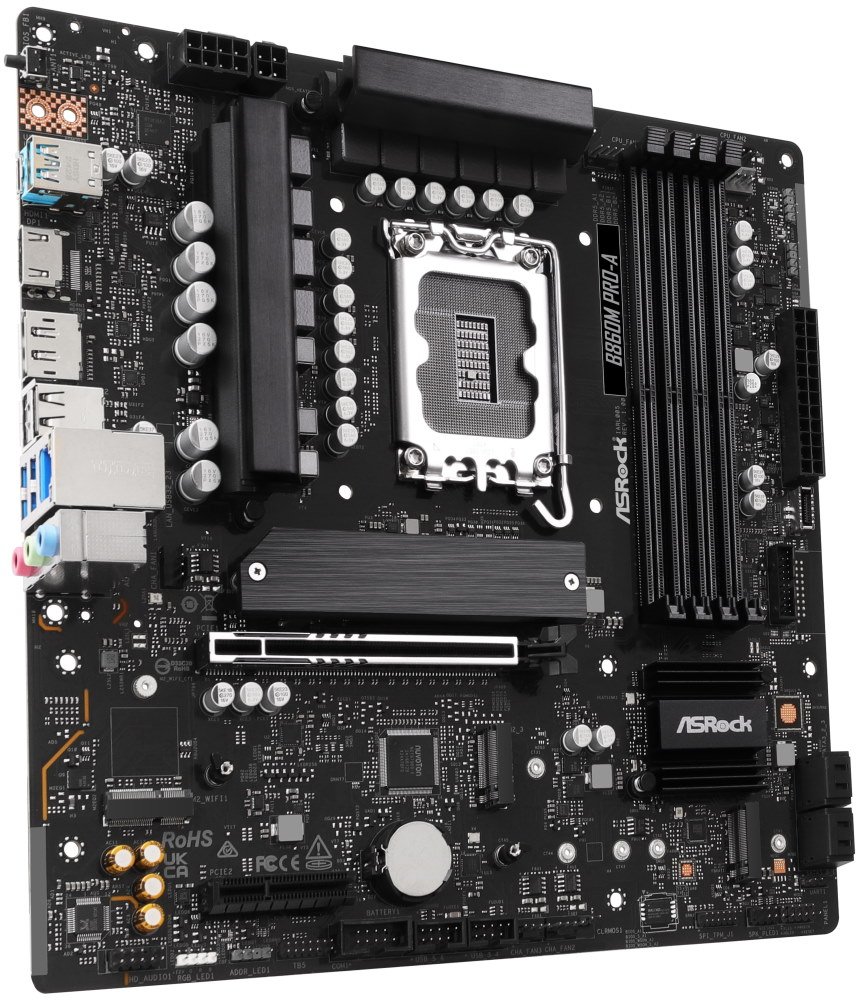 Základní deska ASRock B860M Pro-A je dále osazena rozhraním PCIe Gen5 Blazing M.2, které nabízí dvojnásobnou šířku pásma a je ideální pro vysokorychlostní SSD. Během vysoké provozní zátěže – například při práci s náročnými aplikacemi nebo hraní her – zajistí spolehlivý chod zajistí hliníkový chladič spolu s headery ventilátorů a funkce pro vyladění výkonu.