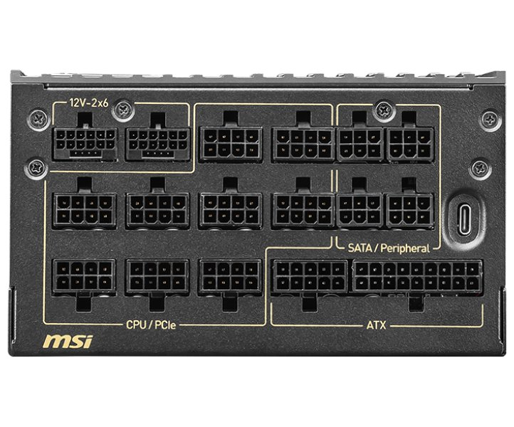 Napájecí zdroj o výkonu 1600 W je osazen tichým a přitom výkonným 135 mm velkým ventilátorem. Zdroj splňuje certifikaci 80PLUS Titanium, standard ATX 3.1 a má odpojitelné kabely. Prostřednictvím MSI Gaming Intelligence je možné v reálném čase sledovat spotřebu jednotlivých komponentů či nastavovat rychlost ventilátoru.
