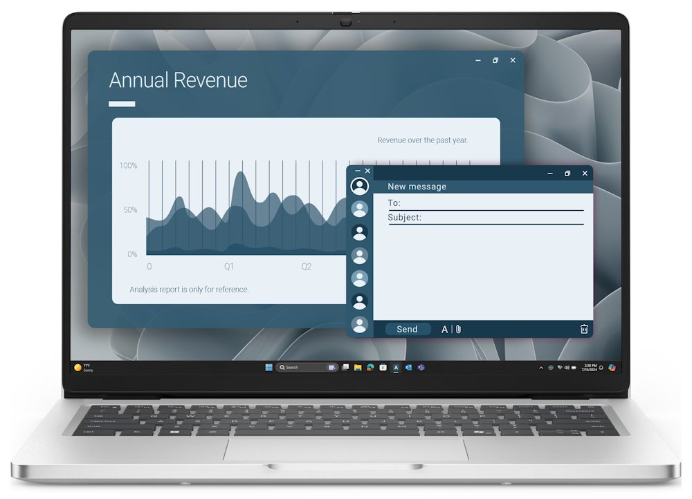 O ochranu citlivých dat se stará integrovaná čtečka otisku prstů. Další výbava zahrnuje například podsvícenou klávesnici se samostatnou klávesou Copilot, díky čemuž naběhnete do AI rozhraní jediným stisknutím. V rámci rozhraní Copilot pak můžete tvořit nejrůznější obsah (tabulky, dokumenty, prezentace apod.), získávat informace, dělat rešerše, plnit pracovní nebo studijní projekty. Samozřejmostí je také přítomnost dostatečného počtu konektorů připojení potřebných periferií a zvýšení pracovní flexibility.