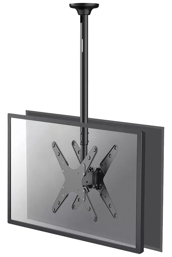 Neomounts CL35-340BL22 je flexibilní stropní držák určený pro dvě ploché obrazovky s úhlopříčkou 23–42". Díky pokročilé technologii naklápění a otáčení umožňuje nastavit optimální pozorovací úhel v jakékoliv situaci. Držák nabízí náklon až 25° a otáčení v plném rozsahu 360°, což zajišťuje maximální přizpůsobitelnost podle vašich potřeb.