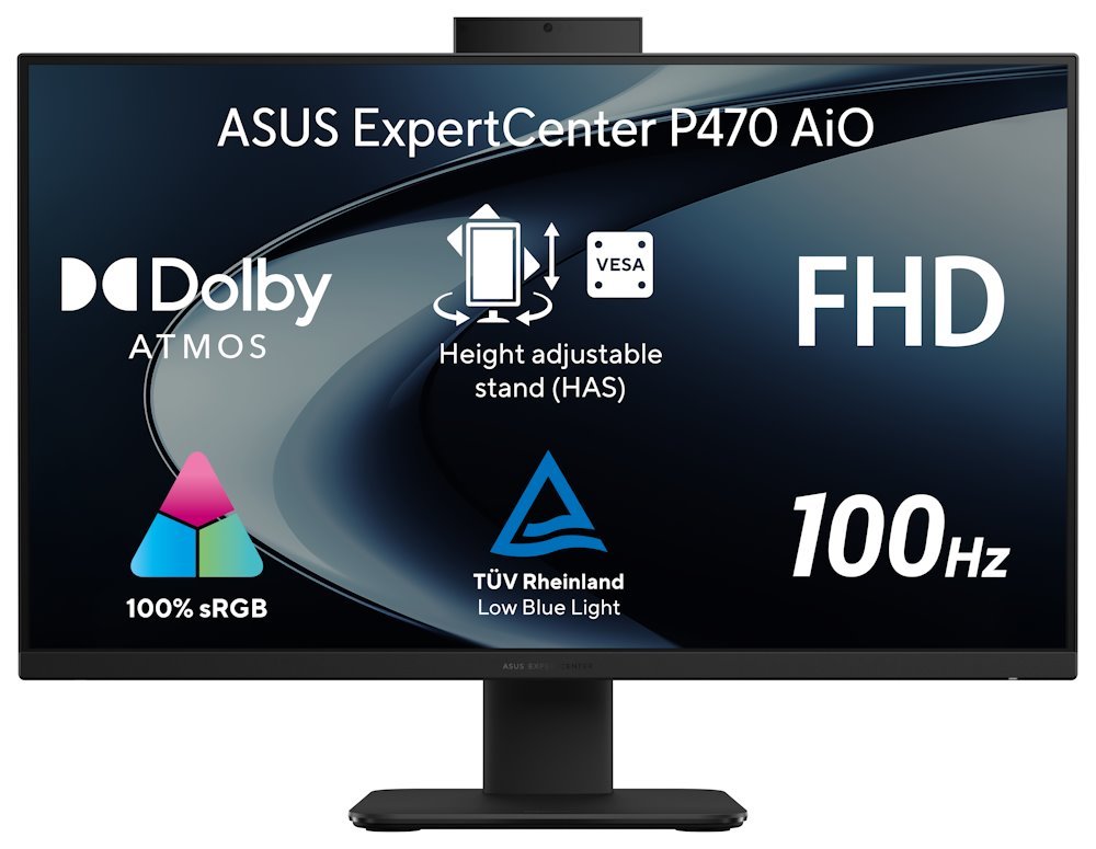 ASUS ExpertCenter P400 AiO produkuje obraz v ostrém a detailním Full HD rozlišení na ploše 27 palců. Displej pokrývá 100 % sRGB barevné palety, takže ani po stránce barev – ať už při práci se základními grafickými aplikacemi nebo sledování filmů či videí – budete dostatečně saturováni.