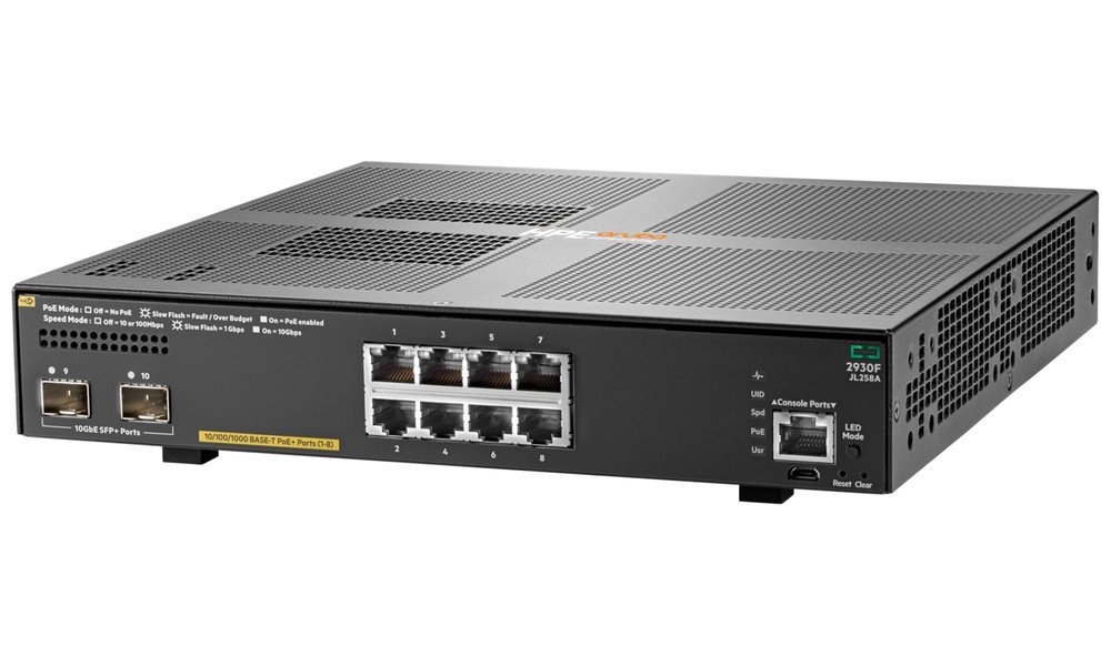 Spravovatelný switch s 8× 10/100/1000 Mbps RJ-45 porty s podporou PoE+ napájení celkem až 125 W a 2× 1/10 GbE SFP+ sloty pro uplink. Nabízí přepínací kapacitu 56 Gbps a propustnost až 41,7 Mpps. Díky podpoře nízké latence (< 3,8 µs při 1 GbE, < 2,9 µs při 10 GbE), pokročilé správě a výkonnému hardwaru je ideální volbou pro moderní digitální pracovní prostředí. Switch je vhodný pro centralizovanou správu přes platformy jako AirWave, IMC či webové rozhraní.