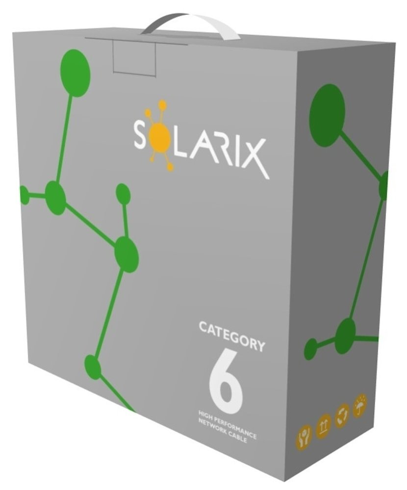 Instalační kabel Solarix SXKD-6-UTP-PVC je spolehlivý nestíněný kabel kategorie 6, který je určený pro provoz ethernetových protokolů, včetně 2.5GBASE-T a 5GBASE-T. Konstrukce kabelu je U/UTP s plastovým křížem, který zajišťuje maximální oddělení párů od sebe po celé délce kabelu. Typ pláště je PVC s třídou reakce na oheň Eca. Vodiče kabelu jsou vyrobeny z kvalitního měděného drátu s čistotou mědi 99,97 %. Kabel bez problémů splňuje požadavky z mezinárodních standardů ISO/IEC 11801, EN 50173 a ANSI/TIA 568.2-D. V případě CPR (nařízení EU č. 305/2011) je kabel testován u nezávislé laboratoře FORCE TECHNOLOGY v systému posuzování vlastností AVCP 3. Stejně jako ostatní kabely Solarix, je i kabel SXKD-6-UTP-PVC značen metráží po 1 m v rozsahu od 0 do 100 m. Kabel je dodáván ve vysoce odolném třívrstvém leštěném kartónovém boxu, na kterém jsou uvedeny všechny nezbytné produktové informace, včetně čárových kódů, výrobní šarže, popisu a nejdůležitějších technických parametrů.