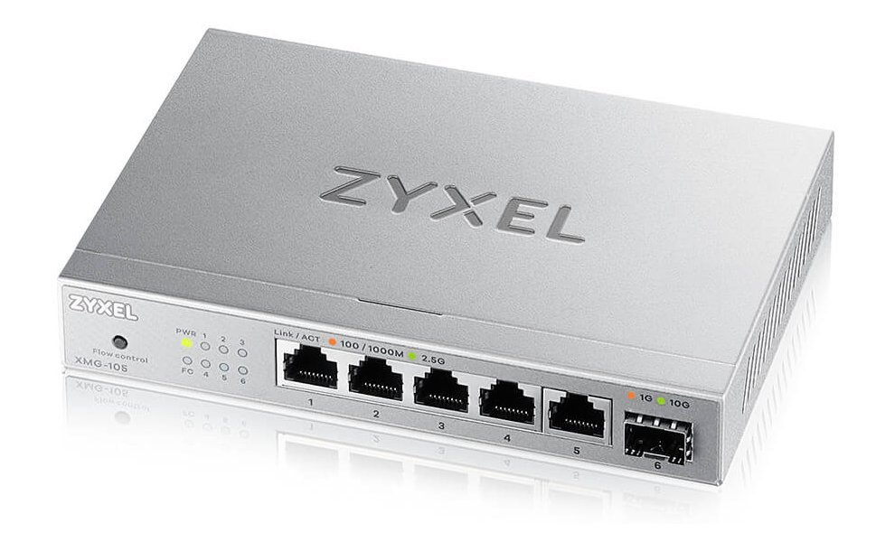 Zyxel XMG-105 je ideální volbou pro uživatele, kteří potřebují zvýšit propustnost své sítě až na 2,5násobek běžné gigabitové rychlosti bez nutnosti měnit stávající kabeláž Cat 5e. Switch disponuje 5 porty s rychlostí 2.5G a jedním 10G SFP+ portem pro vysokorychlostní připojení k síťovému úložišti nebo jako uplink.