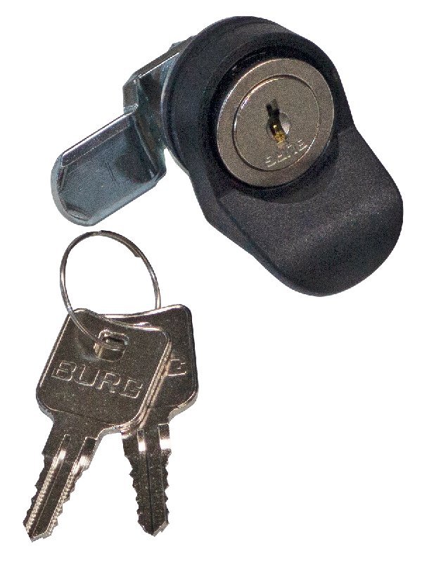Kulatý zámek typu BURG určený do klik celoskleněných dveří nástěnných rozvaděčů Triton.