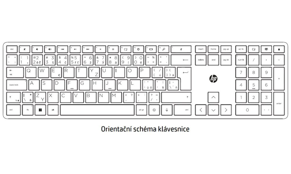 Upozornění: Klávesnice na fotografiích má odlišné rozložení kláves (US) a slouží pouze pro ilustrační účely. Orientační rozložení kláves (CZ/SK) je vyobrazeno na schématu.