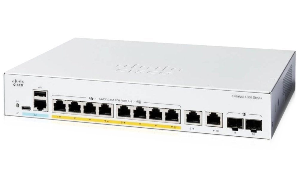 Cisco Catalyst C1300-8FP-2G představuje profesionální síťový přepínač z řady Catalyst 1300, který kombinuje vysoký výkon s pokročilými funkcemi pro správu sítě. S osmi gigabitovými porty podporujícími PoE+ standard IEEE 802.3at a celkovým rozpočtem 120 W poskytuje dostatečný výkon pro napájení IP telefonů, bezdrátových přístupových bodů nebo IP kamer přímo přes síťový kabel.