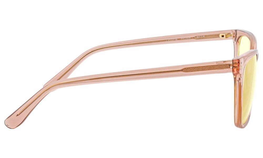 Model Tindra z kolekce Kista inspirované nordickými technologickými centry kombinuje elegantní obdélníkový design s praktickou funkcí dioptrických brýlí. Brýle jsou vyrobeny z prémiového polymeru v atraktivním provedení Rose Latte a osazeny jantarovými čočkami s dioptriemi +1,5.