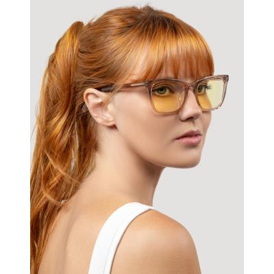 Model Tindra z kolekce Kista inspirované nordickými technologickými centry kombinuje elegantní obdélníkový design s praktickou funkcí dioptrických brýlí. Brýle jsou vyrobeny z prémiového polymeru v atraktivním provedení Rose Latte a osazeny jantarovými čočkami s dioptriemi +2,5.