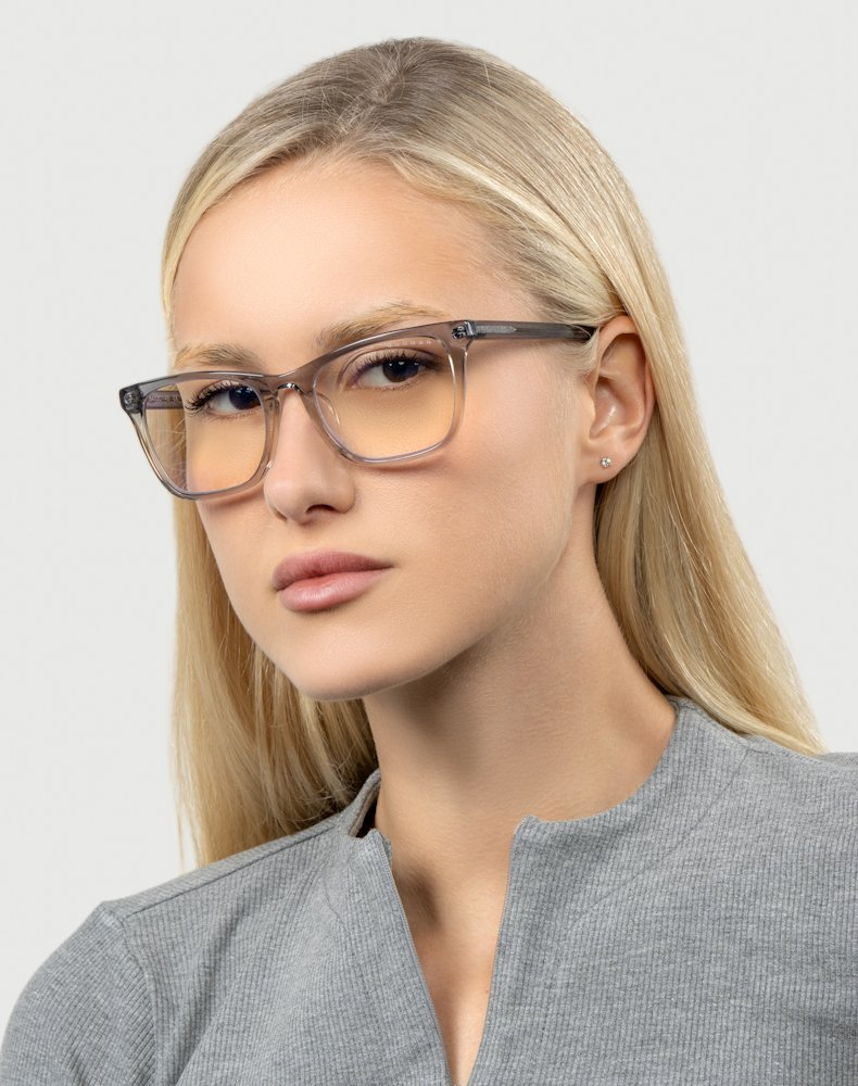 Model Tindra z kolekce Kista inspirované nordickými technologickými centry kombinuje elegantní obdélníkový design s praktickou funkcí dioptrických brýlí. Brýle jsou vyrobeny z prémiového polymeru v atraktivním provedení Smoky Quartz a osazeny čirými čočkami s dioptriemi +2,0.