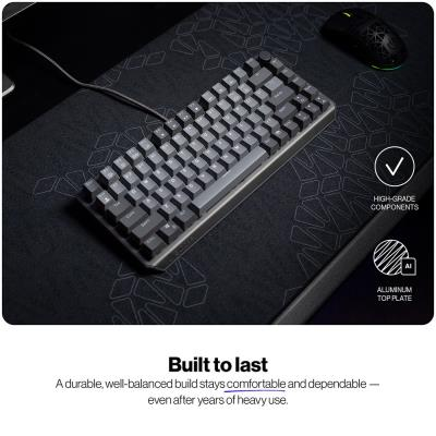 Klávesnice Endorfy Thock V2 75 % US, která vám v kompaktním provedení zprostředkuje špičkové herní ovládání. Disponuje 82 klávesami v 75% rozložení, díky čemuž vám uvolní místo na stole, ale nikterak neořeže vaše možnosti na vítězství. Tento design nabízí optimální poměr mezi kompaktností a funkčností. Tělo klávesnice Endorfy Thock V2 75 % US je zhotoveno z kvalitních materiálů, vyznačuje se přítomností horní hliníkové desky, která zvyšuje pevnost a celkové vyztužení.