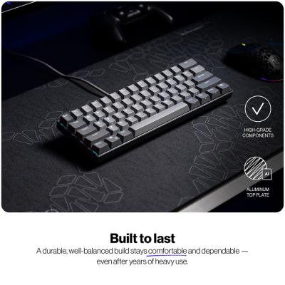 Thock V2 Compact představuje novou generaci mechanických klávesnic s 60klávesovým rozložením US ANSI a exkluzivními lineárními spínači Endorfy Red. Klávesnice je vyrobena z prémiových materiálů s vyztužením pevnou hliníkovou horní deskou, což zajišťuje robustní a vyvážený pocit při používání.