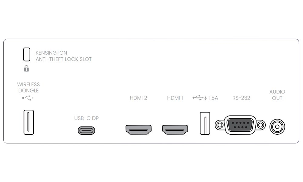 Konektivita: 2× HDMI, 2× USB, USB-C, RS-232, audio výstup