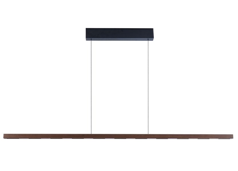Designové závěsné LED svítidlo kombinující přírodní ořechové dřevo s moderní technologií senzorového ovládání.