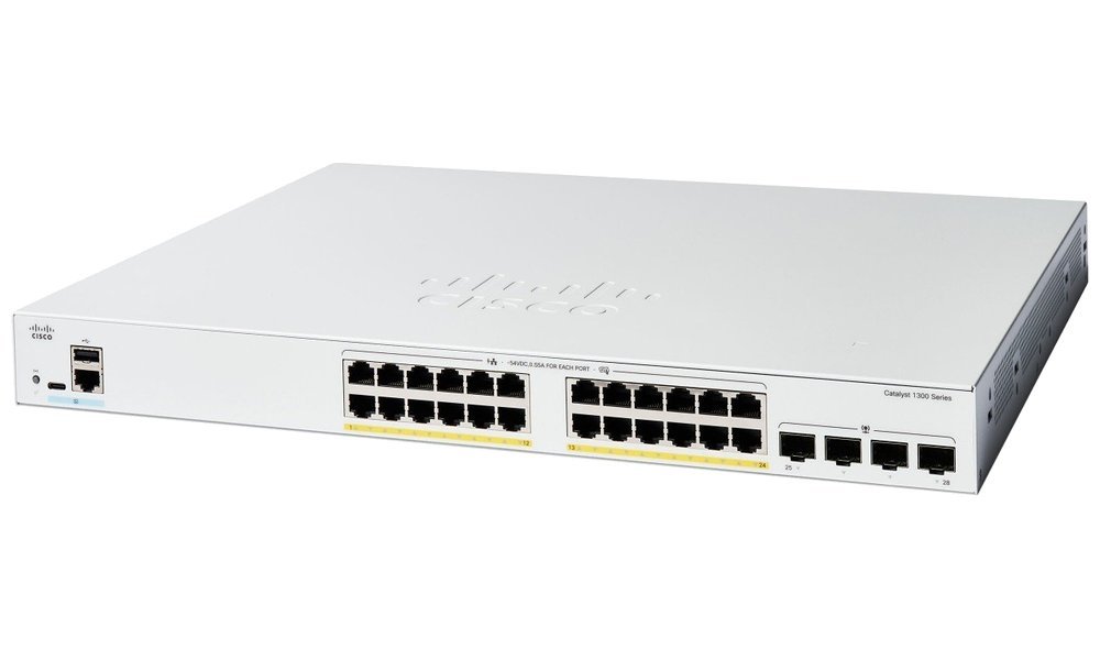 Switch Cisco Catalyst 1300-24FP-4G je profesionální síťové řešení navržené pro pobočky a střední podniky vyžadující spolehlivou konektivitu s podporou PoE+ zařízení. S 24 gigabitovými PoE+ porty a celkovým výkonem 370 W dokáže napájet širokou škálu síťových zařízení včetně IP telefonů, bezdrátových přístupových bodů a IP kamer.