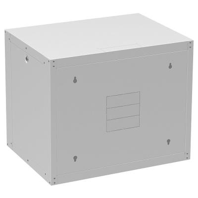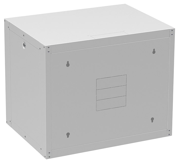 Zadní stěna obsahuje 4 otvory pro bezpečné uchycení na stěnu a je montovatelná samostatně. Rozvaděč je dodáván s jedním párem posuvných 19" vertikálních lišt.