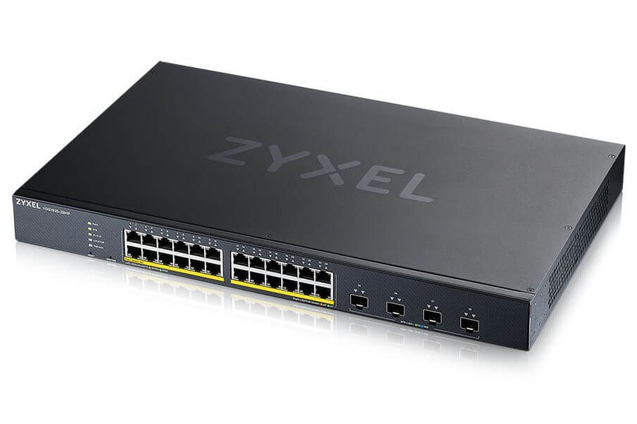 ZyXEL XGS1935-28HP je Lite-L3 Smart Managed switch s 24 porty Gigabit Ethernet s podporou PoE+ a 4 porty 10GbE SFP+ pro vysokorychlostní připojení k páteřní síti. Switch nabízí celkový PoE budget 375 W podle standardu IEEE 802.3at s výkonem až 30 W na port, což umožňuje napájení náročnějších zařízení, jako jsou IP kamery, access pointy nebo IP telefony.