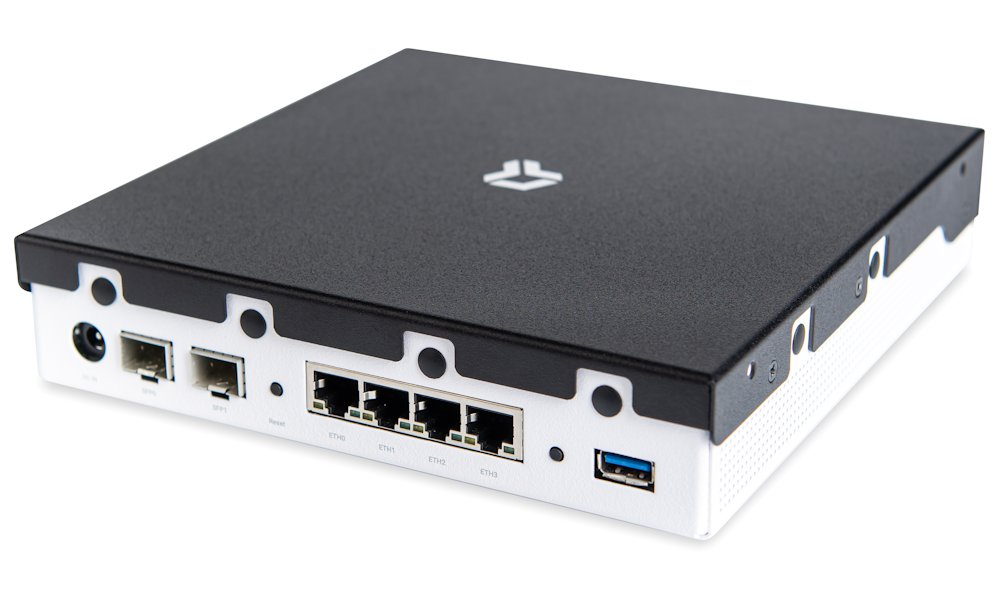 Porty: 1× SFP+ (10 Gbps) WAN, 1× SFP+ (10 Gbps) LAN, 4× 2,5Gbps RJ-45, 2× USB 3.0 host