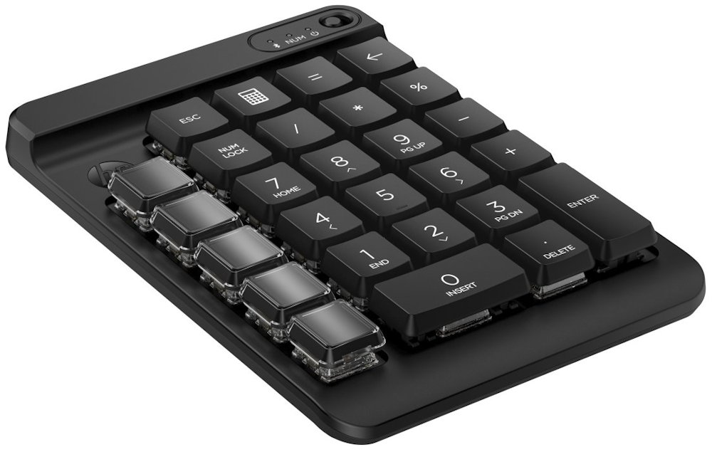 Klávesnice, numerická, bezdrátová, 9 programovatelných kláves, mechanické nízkoprofilové klávesy, Bluetooth, černá
