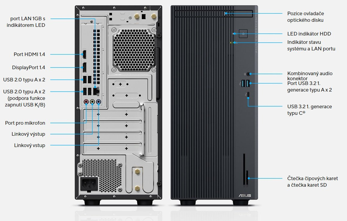 Inovativní konstrukce zvyšuje celkovou plochu pro odvod tepla, lépe vede vzduch a umožňuje hladký provoz i při vysoké zátěži. ASUS ExpertCenter P5 potěší také svou výbavou, která obsahuje USB porty pro připojení periferií, čtečku paměťových i čipových karet, a dokonce také DVD mechaniku.