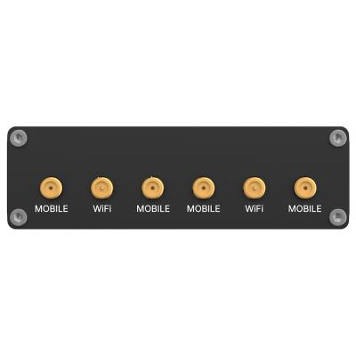Anténní konektory: 4× SMA (mobilní), 2× RP-SMA (Wi-Fi)