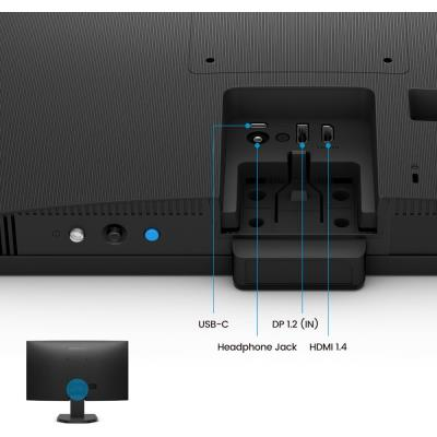 Monitor nabízí komplexní konektivitu včetně USB-C s DisplayPort Alt Mode pro přenos dat, DisplayPort 1.2 a HDMI 1.4. Ergonomický stojan umožňuje náklon -5° až +20° pro optimální nastavení pracovní pozice. Integrované stereo reproduktory 2 × 2 W a konektor sluchátek zajišťují kompletní multimediální zážitek.