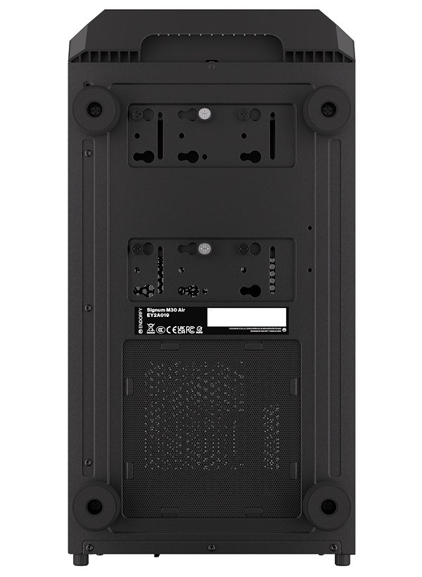 Skříň Endorfy Signum M30 Air kombinuje kompaktní rozměry 401 × 387 × 205 mm s promyšleným prodyšným designem. Přední mesh panel společně se třemi předinstalovanými ventilátory Stratus 120 PWM zajišťují optimální proudění vzduchu a stabilní teploty i při náročném zatížení. Perforovaná horní část skříně umožňuje efektivní odvod teplého vzduchu.