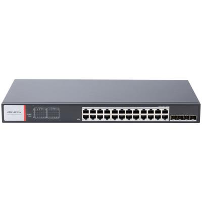 Switch DS-3T1528HP-SI-24P4F představuje profesionální řešení pro budování robustních průmyslových sítí s vysokými nároky na napájení koncových zařízení. Disponuje celkem 24 Gigabit PoE porty, z nichž první čtyři podporují standard IEEE 802.3bt Hi-PoE s maximálním výkonem až 90 W na port. Zbývajících 20 portů poskytuje standardní PoE s výkonem 30 W na port podle norem IEEE 802.3af/at. Pro uplink konektivitu jsou k dispozici 4 Gigabit SFP porty pro optické připojení.