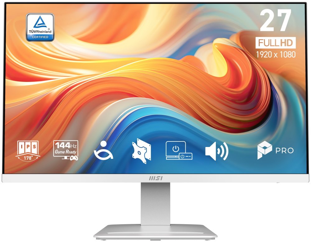 Monitor MSI PRO MP273W E14A kombinuje 27" IPS panel s rozlišením Full HD (1920 × 1080 px) a obnovovací frekvencí 144 Hz pro plynulý obraz. S dobou odezvy 1 ms (MPRT) a podporou AMD FreeSync™ v rozsahu 48–144 Hz zajišťuje hladké zobrazení bez trhání a rozmazání.