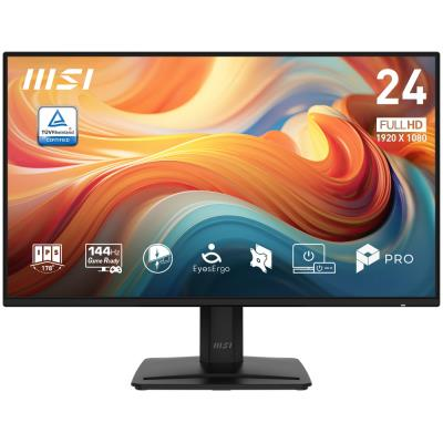 Monitor MSI PRO MP242 E14A kombinuje profesionální vlastnosti s herním výkonem. Díky 23,8" IPS panelu s rozlišením Full HD (1920 × 1080 px) a pokročilé technologii Adaptive-Sync zajišťuje plynulý obraz bez trhání při obnovovací frekvenci až 144 Hz. Panel s rychlou odezvou 1 ms (MPRT) a širokými pozorovacími úhly 178°/178° nabízí věrné barevné podání s pokrytím 121% sRGB a 91% DCI-P3 barevného prostoru.