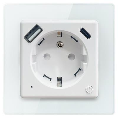 Zásuvka, vnitřní, pro chytrý dům, jedna zástrčka, s kolíkem (typ E), 1× USB, 1× USB-C, PD 20W, Zigbee, LIDL, TUYA, Zigbee repeater, bílá