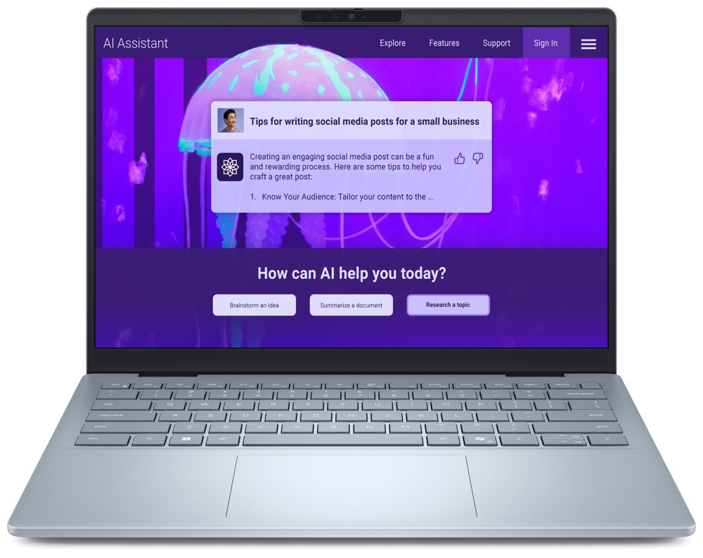 Notebook Dell 14 Plus je vybaven integrovanou jednotkou Intel AI Boost NPU, která funguje jako výpočetní centrum pro procesy umělé inteligence. Skrze AI nástroj Copilot+ PC pak můžete generovat textový i obrazový obsah, usnadnit si práci s tabulkami, prezentacemi, rešeršemi, získávat praktické informace a zkrátka mnohem účelněji plnit potřebné úkoly.