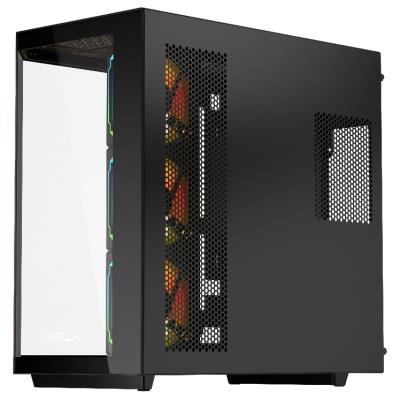 Představujeme futuristickou PC skříň Krux Empero, která kombinuje plně prosklené čelo a boční panel z tvrzeného skla pro maximální prezentaci vašich komponentů a RGB podsvícení. Skleněné panely jsou opatřeny praktickým bezšroubovým montážním systémem s pojistkami pro snadnou manipulaci.