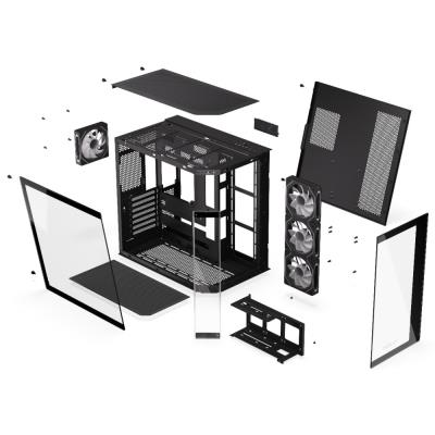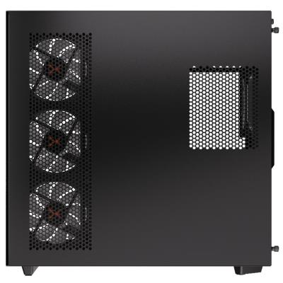 Skříň podporuje instalaci radiátorů na čtyřech pozicích: vpředu (240/360 mm), vzadu (120 mm), nahoře (240/280/360 mm) a dole (240/280/360 mm). Snímatelné prachové filtry nahoře a dole udržují interiér čistý.