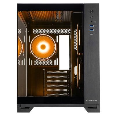 Skříň CHIEFTEC Visio nabízí moderní řešení pro sestavení výkonného PC s důrazem na estetiku a funkčnost. Díky dvoukomořovému designu a kompatibilitě s back-connect deskami (ASUS BTF a MSI Project Zero) umožňuje elegantní vedení kabelů bez viditelného nepořádku. Temperované sklo na přední i boční straně poskytuje prémiový vzhled a umožňuje prezentaci vnitřních komponentů.
