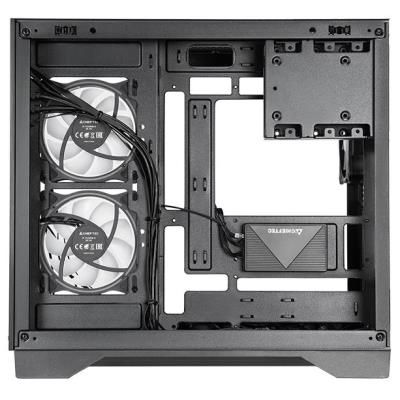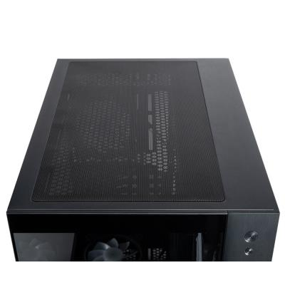 Skříň je vybavena 6 předinstalovanými A-RGB ventilátory o průměru 120 mm s řídicím hubem pro synchronizaci s základní deskou a PWM regulaci otáček. Podporuje instalaci výkonných grafických karet do délky 410 mm a procesorových chladičů do výšky 175 mm. Materiálové provedení kombinuje ocelový plech SPCC tloušťky 0,65–0,9 mm s temperovaným sklem.