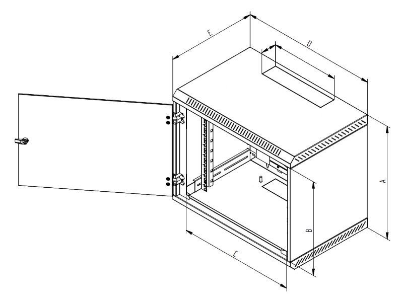 Jednodílný nástěnný rozvaděč s krytím IP20, nosnost při správném zavěšení 80 kg. Dveře celoplechové, robustní svařovaná konstrukce. Součástí rozvaděče jsou dvě posuvné vertikální lišty.