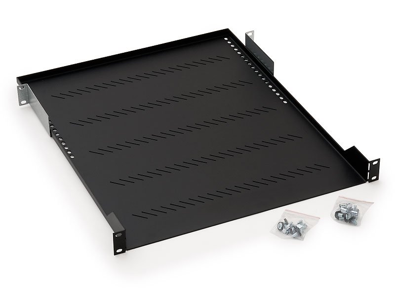 Police s perforací 1U. Maximální nosnost police je 40 kg.