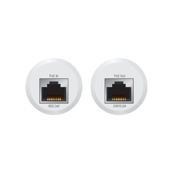 Ports: 1× GbE RJ-45 PoE input, 1× GbE RJ-45 PoE output