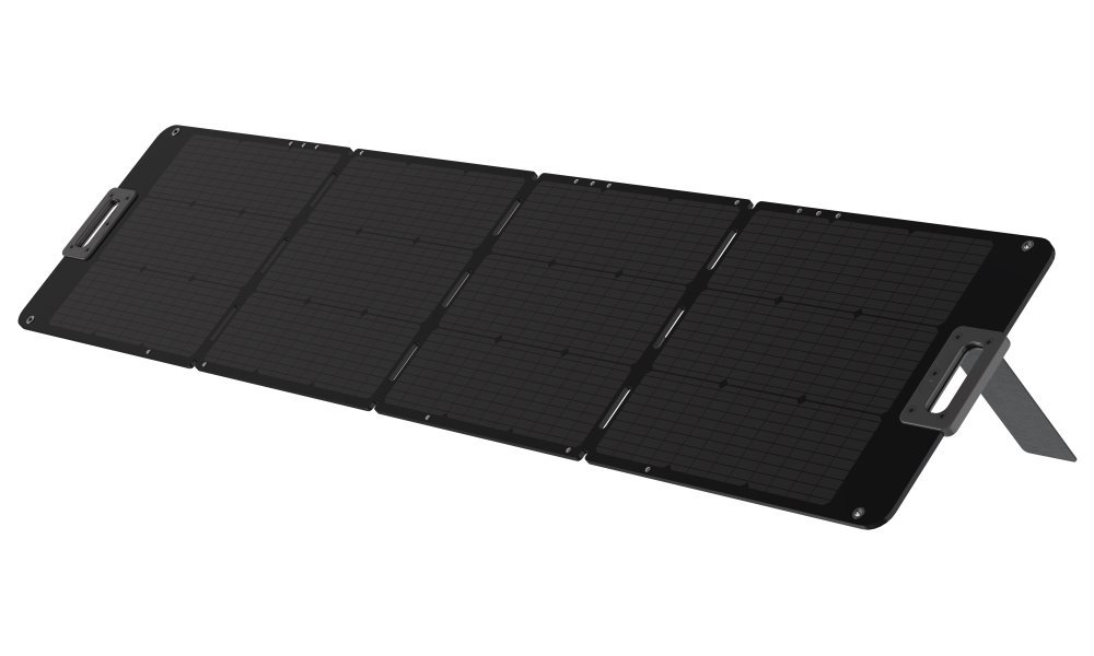 Highly efficient portable solar panel with a power output of up to 200 W for charging EZVIZ PS300 and PS600 stations with clean and reliable solar energy. It uses monocrystalline silicon cells and multilayer technology, achieving a high efficiency of up to 23%. The average time required to charge the PS300 station is (depending on environmental conditions) 8 to 16 hours, and for the PS600, it's 4 to 8 hours. It features an MC4 output, an integrated stand with adjustable angle, and a convenient handle for easy transport. When folded, the panel takes up almost no space and easily fits in the car trunk. Additionally, it is dust and water-resistant, rated as IP67.