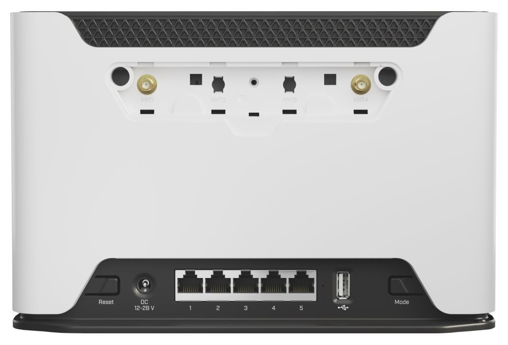 Home high-speed LTE router operating in the 2.4 and 5 GHz + LTE (category 6) bands. It supports the 802.11a/b/g/n/ac standard and TR-069 for remote management. Two internal antennas with 2 and 4 dBi gain ensure stable wireless connection and optimal coverage. MikroTik Chateau LTE6 has five GbE ports, one USB 2.0 port, and a micro SIM slot.